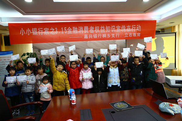 以3.15、非法金融教育宣传为契机,嘉兴银行桐乡支行团支部举办第六期“小小银行家”活动