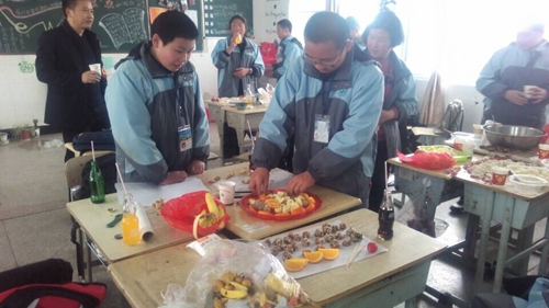 当天下午,学生在指导老师曹蕾蕾的指导下,按照事先的分组分工,准备好了包水饺和水果拼盘的所有原料和工具。在比赛过程中,同学们收拾课桌、洗净双手、领取食材,迫不及待地开始了包饺子和水果拼盘比赛。老师多次向大家耐心讲解和示范后,全班学生充分发挥自己的想象和动手能力,别出心裁地做出了形态各异的饺子和水果拼盘。在激烈而紧张包水饺和水果拼盘比赛中,教室里处处洋溢着欢声笑语,大家都沉浸在快乐的氛围中。当热气腾腾的饺子出锅后,许多学生吹着热气争先品尝。