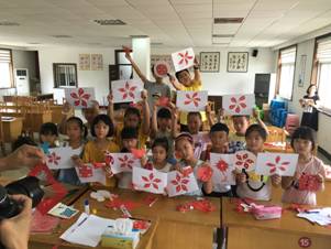 时光飞逝,转眼间,香港已回归祖国怀抱20年。在这20年间,香港与大陆交流密切,发展迅速。在此次活动中,剪纸老师向小朋友们展示了香港特别行政区区旗,同时也教大家用二折法、五折法等方法剪出香港区旗上紫荆花的花瓣。孩子们一边热烈讨论剪纸的技巧方法,一边亲手实践,并时不时的向老师请教,一笔一笔将紫荆花瓣勾画出来,然后再慢慢地剪下来,最后将剪出来的五片紫荆花瓣小心翼翼地粘贴在纸上或扇子上,迫不及待的向老师展示自己的作品。