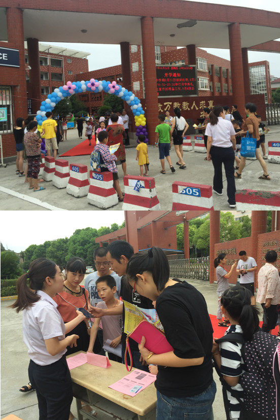 一年一度的新生开学日在这秋风徐徐的日子里拉开序幕,桐乡市龙翔小学变得热闹起来,龙翔支行团支部的团员青年也跟随开学的步伐来到了校园里,为各位学生家长指导新一学期的学生缴费。