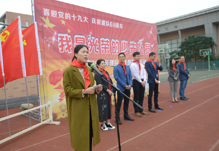 最后,团市委书记钱丽芳做重要讲话,钱书记首先向新队员们表示衷心的祝贺,希望少先队员们像宣誓的那样,好好学习,好好锻炼,时刻以少先队员的标准严格要求自己,在少先队组织中磨练,为胸前的红领巾增光,为自己学校增光,为家乡增光。同时,钱书记对少先队辅导员们提出要求,希望全市少先队辅导员们一如既往做好少先队工作,把爱心和热心献给孩子,把智慧献给红领巾事业,做少先队员的亲密朋友和指导者。