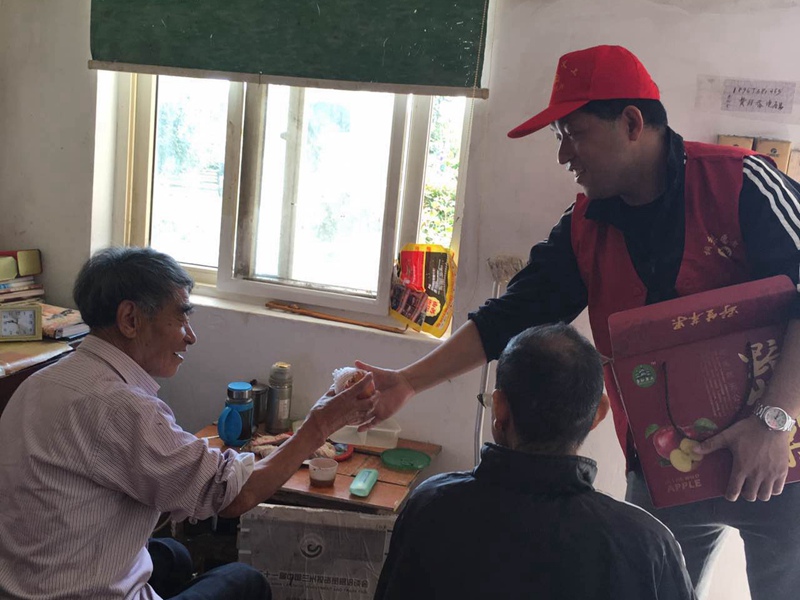 志愿者们来到敬老院,了解老人们在敬老院的生活情况,实地查看老人们的生活环境,陪老人一起谈话聊天,询问他们的身体情况,并为每一位老人送上水果。暖暖温情,贴心的问候,真切的关怀,传递到了每一位老人的心窝里。
