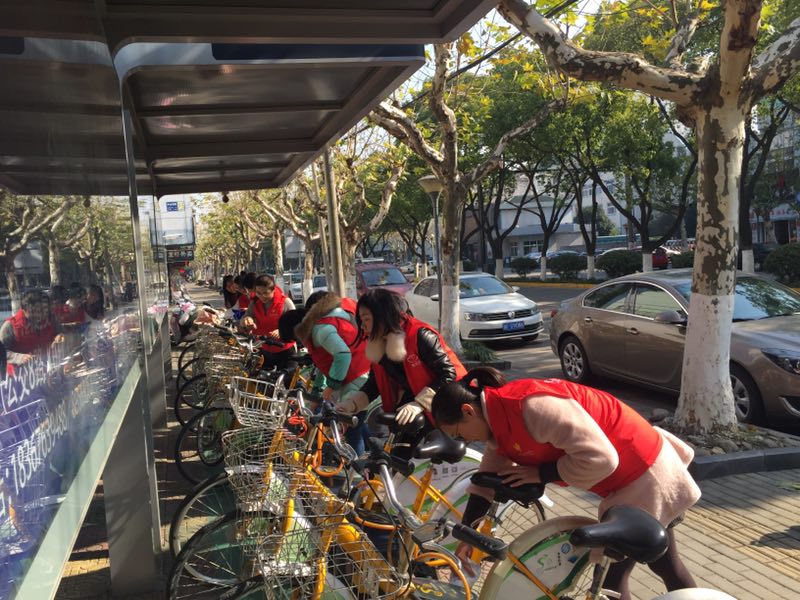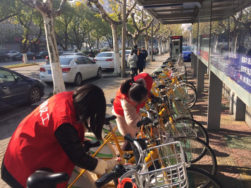 活动中,青年团员们手拿抹布,仔细擦拭着一辆辆公共自行车,不放过任何一个死角,经过半个小时的努力,将两个点的公共自行车擦洗的干干净净,圆满的完成了本次活动,用自己的行动弘扬了志愿者精神。