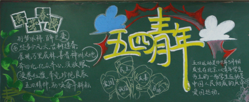 通过查阅资料,绘制板报,同学们再次回顾那段波澜壮阔的历史,产生无穷的感慨。“五四”不仅仅是一个历史事件,更是一种精神,它表现出青年人对中华民族炽热的爱,对国家前途和命运的关注,表现着青年人的责任和使命。师生们纪念“五四”运动,就是要继承“五四”传统,弘扬“爱国、进步、民主、科学”的精神,高举爱国主义旗帜。