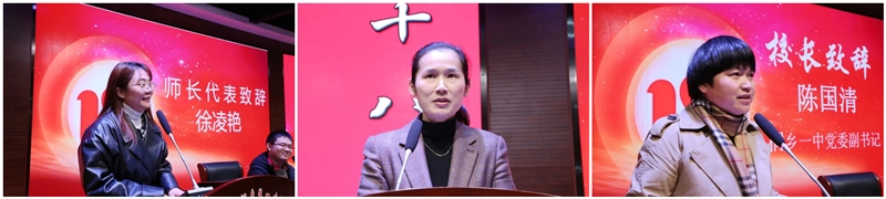 伴随着雄壮的国歌声,成人仪式正式开始。徐凌艳首先代表高三全体教师,向各位同学表达了祝贺。徐凌艳提到了十年前自己作为学生代表参加一中成人仪式的经历。回顾成长路程,她对同学们提出了三点期待:坚守本心,向善而行;自励自省,行事坦荡;德行兼备,不忘根本。 同学们的成长,离不开家长十几年如一日的无私付出。家长代表梅丽华和同学们分享了作为医务工作者的成长历程:为理想信念,克服困难不断前行的青春才是无悔的青春。陈国清从自己和同学的约定说起,分享了自己永不言弃的励志故事,并期待同学们学会坚持,敢于担当,懂得感恩。嘉宾们分享了自己的经历和对学生的美好祝福后,向同学们赠送了成人仪式纪念品。