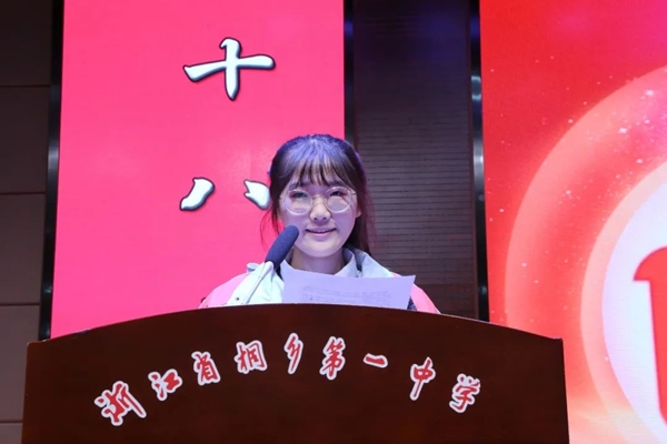 在聆听了老师、家长和领导的美好祝福和殷切期盼后,311班姚芝妃同学代表全体学生表态,将坚定目标,笃定前行,在首考和高考中证明自己的青春。