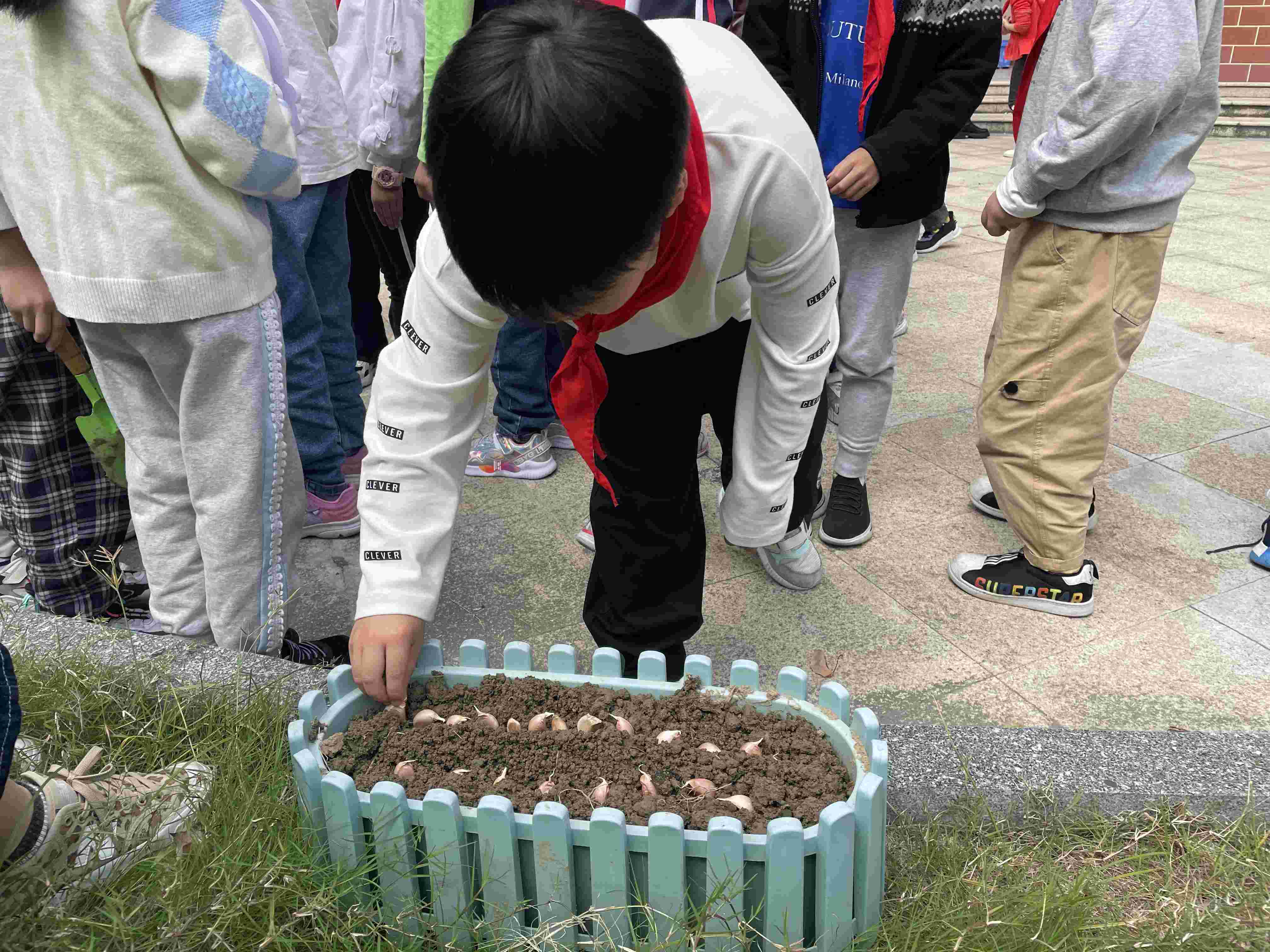 拿起小铲子,带上洒水壶,在老师们的带领下,同学们各个跃跃欲试,激动不已。种植前,钱晓良、潘冰倩老师分享了他的种植经验,并介绍种植区。这次挑选了大小不一的种植盆,小盆种植大蒜和葱,大盆种植萝卜和菜。接下来就开始种植吧!