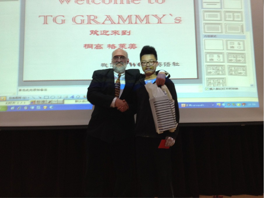 桐高第四届“格莱美”英语歌曲大赛于2013年4月10日在桐高图书馆报告厅顺利举行。本次活动由校团委主办、桐高英语社承办,邀请到了外教David及英语组的6位老师为评委。800多位老师和同学来到现场品味这一场英语歌曲的盛宴。