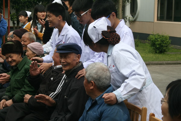 传媒学院的办公室副主任谢伟旋老师也专程从杭州赶来参加了本次活动,传媒学院和卫校的同学为老人表演了节目。卫校康复治疗班的同学和老人进行沟通交流,细致地询问一些关于老人的健康问题,为老人们进行了康复治疗。护理班的同学为他们测量了血压,志愿者们向老人提出健康养身的多项建议。志愿者的优秀表现,得到了老人们的肯定,老人激动地说:“以前每次测量血压都要去医院,现在有了桐乡卫校的师生经常来为我们服务,就能知道自己的身体状况,非常感谢桐乡卫校和传媒学院学生以及学校领导对我们的关心。”
